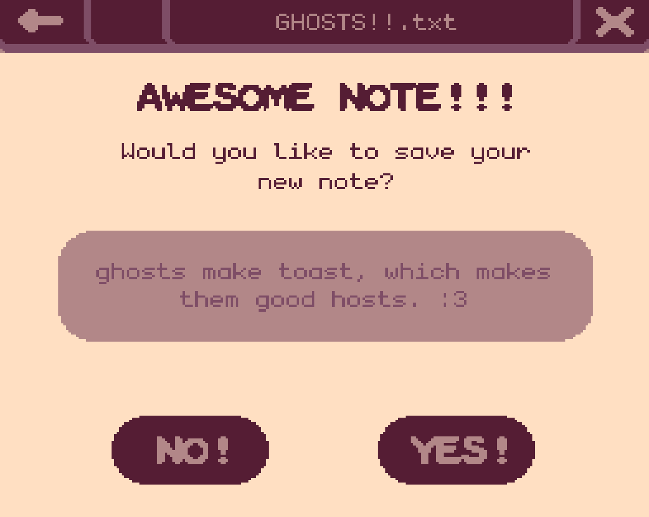 Booting up your usual notes app, you quickly realize it's being haunted by a ghost! Not only that, but the ghost has no idea who she is or what her past was like!!